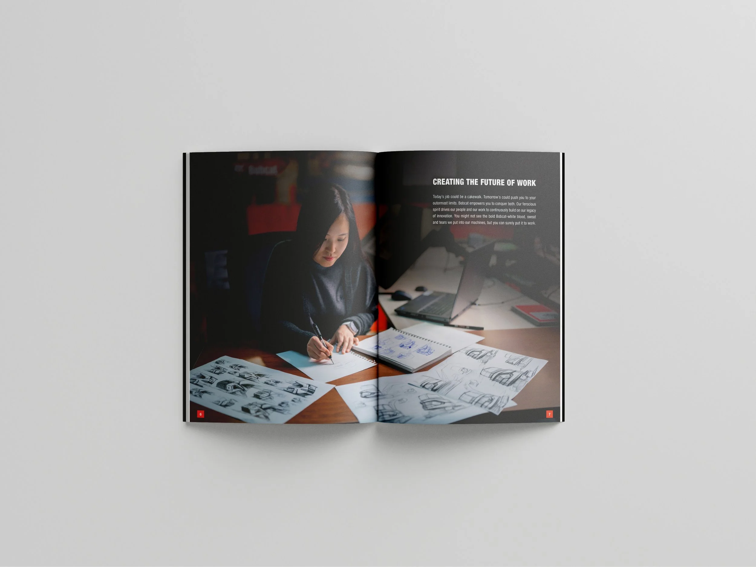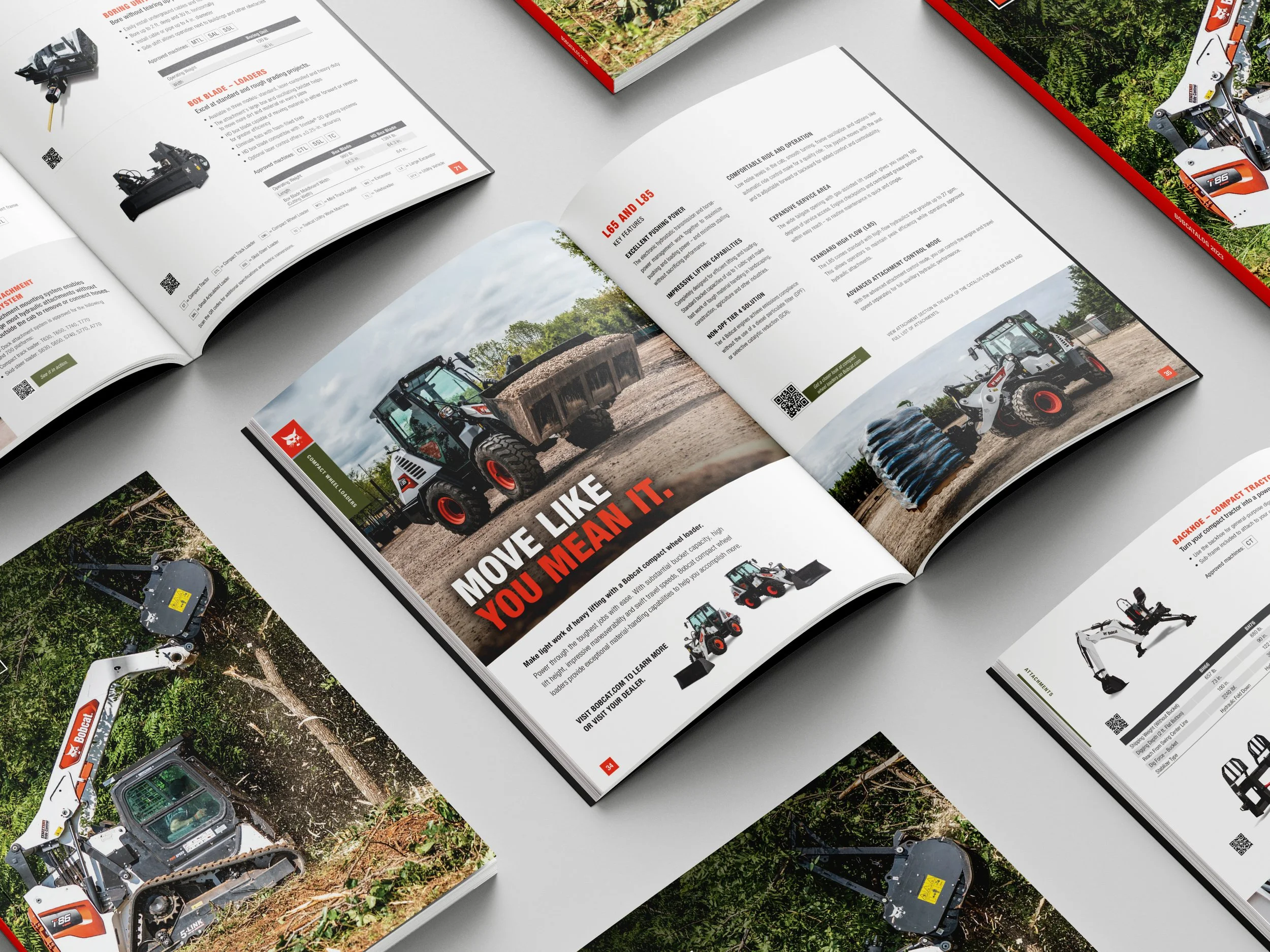 A marketing tool used by Bobcat dealers. Catalog featured a double gatefold extension, and due to thickness was created to be perfect bound.